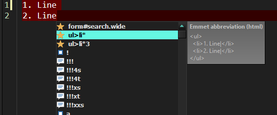 Go to http://docs.emmet.io/ for more information about standard Emmet.