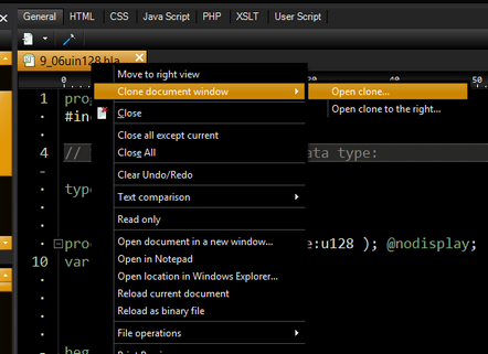 A cloned window is the exact same document in a new tab window. You can open as many clones as you want. They can be opened in the same view or to the right/left.