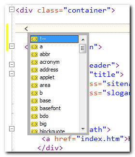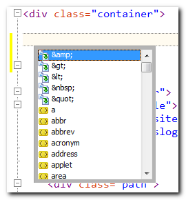 As you can see this user menu list is very similar to the symbol invoked completion list. It doesn't have to be though. Also, when you select an item in this list, both the start and end tags are inserted.