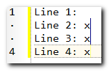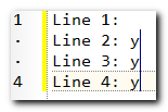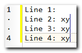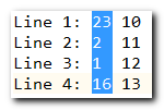 Put the text cursor after the "x" on line 2 and press "Shift+Down" twice. Type "y".
