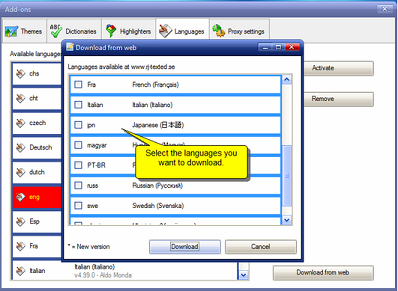Save the file and select it in the "Add-ons" dialog. If you're pleased with the result you can send your new language file to: support@rj-texted.se . And I'll put it here.