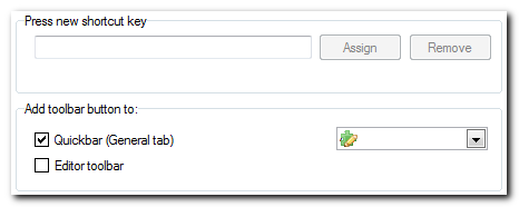 When your tool or script has been added you can choose to add a keyboard shortcut. You can also add your tool to the user toolbar or the editor toolbar. Just click on one, or both, of the check marks and select an icon.