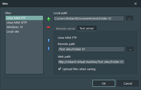 You can select to upload files automatically when you save a local file. It's turned off by default for the remote server and on for the test server.