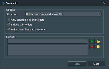 Open a synchronize option window and scan local and remote folder for differences. When the scan ends you will be able to select what to upload, download or delete.